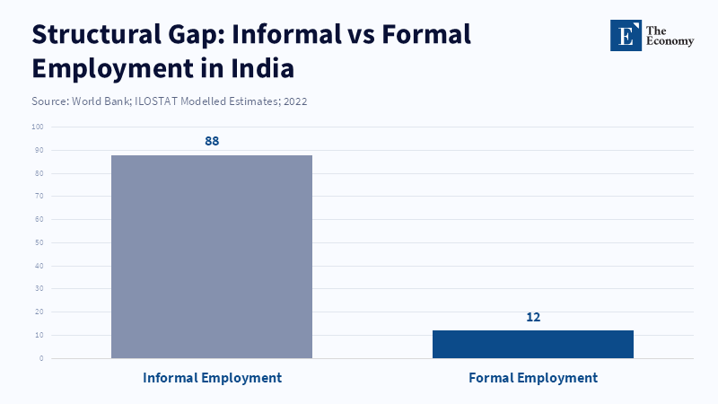 Checking formalization needs clear ways to measure it. The most direct measure, updated regularly, is the number of people on payrolls. Data from the EPFO shows big increases in recent months. For example, there was a record increase of about 2.19 million members in June 2025. This shows that many workers are being included in formal social security systems. However, surveys and data from international sources show the bigger reality: informal employment in India is still very high. Estimates say almost 90% of workers are informally employed. The informal sector also still makes up a large part of the GDP. In simple terms, registrations are rising quickly but from a low starting point. Overall, informal work is still common. It's a process happening at two speeds: there are visible gains in payroll numbers, but within a large informal sector. It's not a complete change yet.