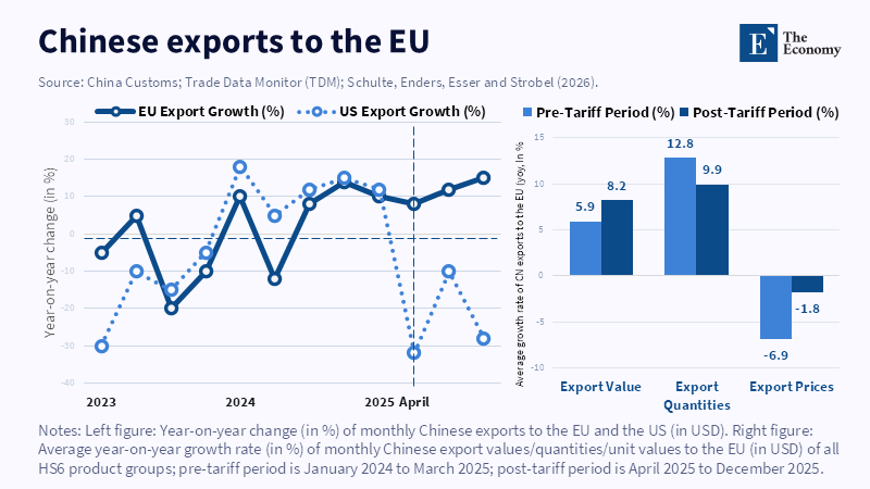 Schulte, P., Enders, A., Esser, A. and Strobel, F., 2026. From tariffs to trade flows: diversion effects and China’s exports to the EU. VoxEU / CEPR Policy Portal.