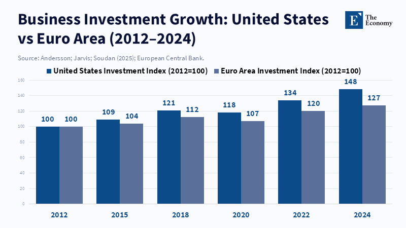 Any serious conversation about the EU’s industrial strategy must start with Europe’s investment situation. Over the last 10 years, the euro area has consistently invested less in business compared to the United States. Research from the European Central Bank shows that investments in things other than housing in the U.S. have grown much faster than in the euro area since the early 2010s. According to the OECD, while the United States leads the European Union in investment capacity and competitiveness, the report does not specifically cite stronger venture capital systems, more connected financial markets, or faster company growth as the main reasons for this difference. The gap is particularly relevant in important sectors such as advanced manufacturing, clean technology, and digital infrastructure.