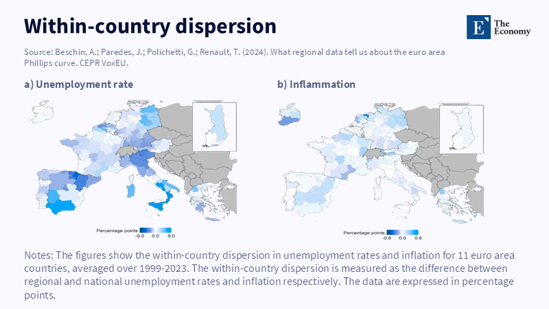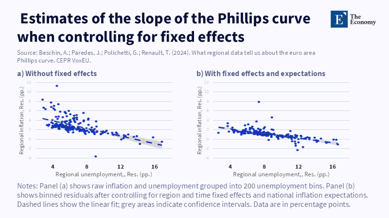 The typical interpretation of the Phillips curve suggests a simple relationship between unemployment and inflation. In reality, this connection varies. Examination of regional data within the euro area reveals details that challenge this standard understanding. First, there are significant differences in inflation and unemployment rates across countries; regional data show distinct histories regarding economic impacts, demand composition, and information availability. According to a 2022 analysis published by Intereconomics, researchers found that general inflation expectations strongly influence how regions in the euro area respond to inflation, beyond local economic elements. The study notes that when these broader expectations are taken into account, the measured influence of local conditions on regional inflation decreases substantially.t regional analysis) and might even approach zero when considering country-specific changes across time. Essentially, much of what seems like a ‘Phillips effect’ at the regional level disappears once we consider what people expect inflation to be.