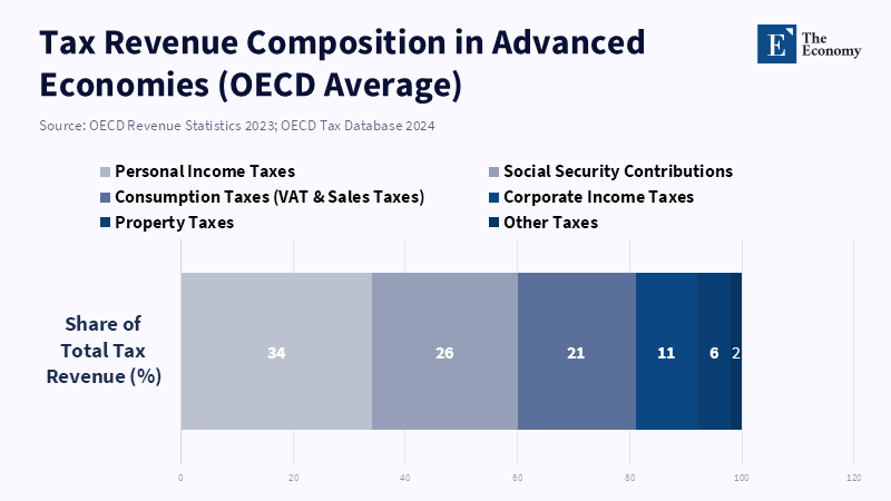 If there is one statistic that should immediately alert fiscal planners, it is this: in advanced economies, consumption taxes make up about one-fifth of total tax revenue (Consumption Tax Trends 2024, 2024). This share is even greater in many European countries because their value-added tax (VAT) systems support extensive welfare programs (EU social benefits expenditure up 6% in 2023, 2024). According to an article in ScienceDirect, when regional AI innovation doubles, the labor share of income in European regions drops by 0.5 to 1.6 percent, with AI alone responsible for a decline of up to 0.31 percentage points from an average labor share of 52 percent. This means that as AI-driven automation expands, a smaller share of income goes to workers, which may lead to lower household spending and a likely decline in VAT revenues (Impact of artificial intelligence on the labor income distribution: Labor substitution or production upgrading?, 2024). This is not simply a theoretical risk—it is an immediate, mechanical problem (Automation and the employment elasticity of fiscal policy, 2023). According to a report from the European Commission, tax revenues in the EU-27 have fallen to their lowest share of GDP since 2011, mainly due to lower revenues from environmental and property taxes. Although concerns remain about how job losses and income concentration from AI adoption could affect the VAT base that funds vital public services, the latest data highlight an overall decline in tax income, underlining potential fiscal vulnerabilities as technology transforms the economy (European Commission presents Annual Report on Taxation, 2025).