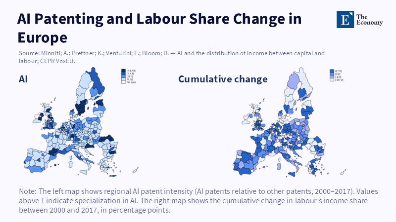 Support for this mechanism is already visible in the data. Recent surveys from 2023 and 2024 confirm rapid uptake of generative AI and process automation throughout various industries. According to a recent article by Minniti, Prettner, and Venturini, regions in Europe that see a doubling in AI innovation experience a decline in labor’s share of income by 0.5% to 1.6%, which is a reduction of 0.09 to 0.31 percentage points from an average share of 52%, attributable solely to AI. A simple calculation brings the scale into focus: if household consumption falls by 5% and VAT accounts for one-fifth of government revenues, total tax income could decrease by about 1 percentage point (Value added tax (VAT) in the EU, 2024). For countries already operating with tight budgets, this is a significant and material loss (The role of simple tax rules and tax fragmentation in European competitiveness, 2025). Conventional forecasting, which often assumes a stable relationship between GDP and VAT receipts, risks overlooking this critical channel (Automation and the employment elasticity of fiscal policy, 2023).