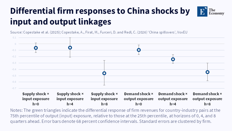 But the standard macro view still misses the part that matters most for long-run policy. It is one thing for a large economy to move commodity prices or lower foreign inflation for a few quarters. It is another for it to change the industrial shape of its trading partners. ECB scenario work from 2024 already points in that direction. According to VoxEU, when China’s export prices decline, this directly lowers import prices in the euro area and the US, which can have a disinflationary effect and increase competition in global markets. Those are not small moves. More importantly, they are overall effects that likely understate what happens inside exposed sectors, regions, and labor markets.