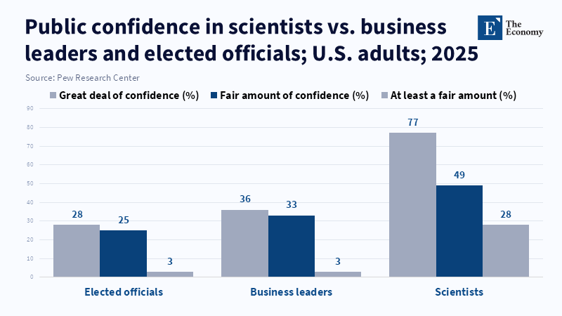 This matters even on its own terms of legitimacy. Pew found in January 2026 that 77 percent of U.S. adults had at least a fair amount of confidence in scientists to act in the public’s best interests. Scientists still rank above business leaders and elected officials on that measure. So the administration is not sidelining a group that the public has already rejected. It is sidelining one who still commands more trust than the people now being elevated over them. That choice tells us something important about the White House's view of expertise. It is not that expertise has lost value. It is that independent expertise has lost convenience. A scientist who studies a problem may slow down a political story. A billionaire who already believes in the story can speed it up.