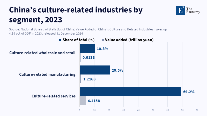 The tangible explanation needs to be explicit. For years, Beijing has laid the cultural and business foundations for the Chinese Maxxing taste to be sustainable. According to the Ministry of Culture and Tourism, the Chinese industry added great value to the extent of 5.964 billion yuan in 2023, 4.59% of GDP. Of this, 69.2% were services related to the culture sector. The Ministry of Commerce noted that the value of exports of personal cultural and entertainment services increased by 39.3%. If one reads these numbers, or more precisely, if they do not seem to lead to any deeper conclusion, one could say that literature and policy ideas are now less distant from growth in China than they were before. Instead, they are another factor in this growth. This makes even flash attention sustainable simply because when you mass up the right supply , content, platforms, talent, distribution, service exports , it turns into a long,running habit and not an utter anomaly.