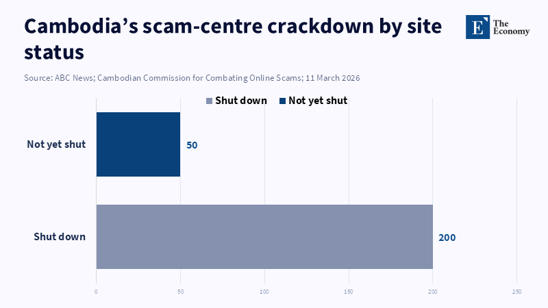 Cambodia says it has shut down about 200 of the roughly 250 sites it believes were offering online scams. Paper, it is all paper. Not that much, in fact. For a cross-border, major voice phishing event, the real operator cannot have a business in which you cut out the lights, clear the compounds, and hang up the police tape. You can't have the owners of the sites, the operators of the sites, the guys who run and keep the sites going, the guys who run the route the calls take, who relay the cash jumps, who keep everything running exactly the same, but in a different country around the corner. No. That is the harder bit, and South East Asia has yet to show it can do it. It is raids, deportations, sanctions, new laws, and repeated assurances to literally annihilate the sites. But the lighted terminal system still exists. It is no longer out on the street. It is still hiding away. Just out of sight. So every new offensive has the feeling of elation and excitement, and a degree of unfinished business about it. Buildings change. Scripts change. Geography changes. The system? It does not.