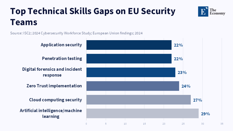 This isn't just obvious from the data about the labor market. The Future of Jobs survey listed AI and big data skills as the fastest-growing occupations among 1,000+ UK firms employing over 14M+ workers, with cyber security in position 3. According to that same report, a skills shortfall in these areas was the No. 1 obstacle to change. The 2024 ISC2 cyber workforce study revealed 1.4M exploits 5.5M cybersecurity workers, leaving a known shortfall of 4.8 M, ample room for them to chase in the European data, where 89% of respondents report talent gaps, with AI/ML a common mention. Claude Mythos accentuates this dynamic: it doesn't make great security expertise redundant; it makes uncovering bad expertise much easier. It also clarifies the message for educators: there's little point in teaching new workers how to rely on old skills, so that they can recognize what good system architecture looks like.