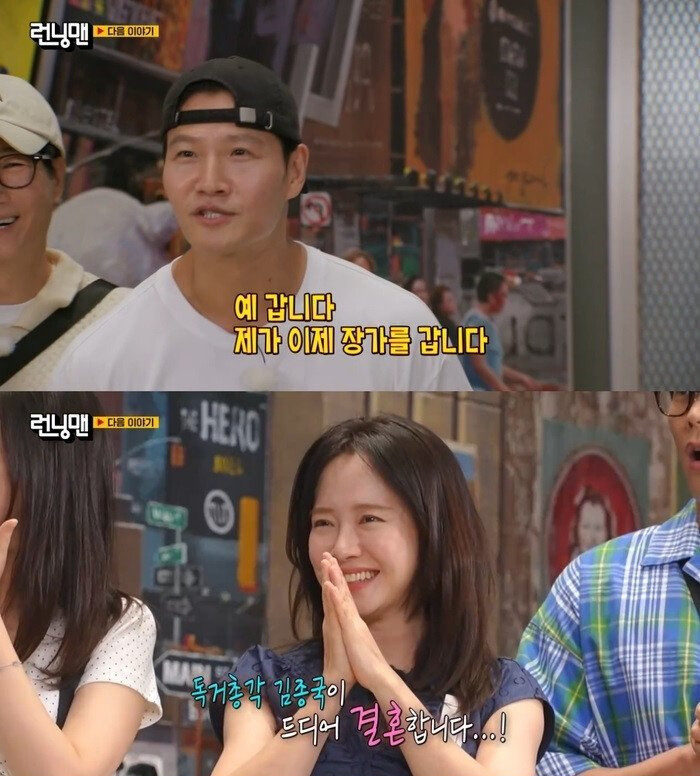This is a callback to when he promised HaHa he’d only find out about his marriage through a news article after learning of HaHa's own marriage belatedly. As the members continued to process the news, Kim Jong Kook explained his reason for the surprise announcement.
