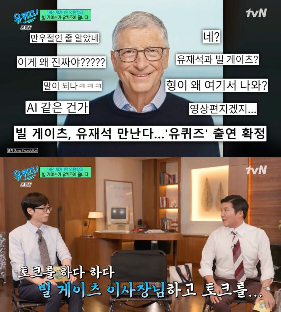 Source: tvN's You Quiz on the BlockYoo Jae-suk immediately set the tone, telling Gates that they're honored.